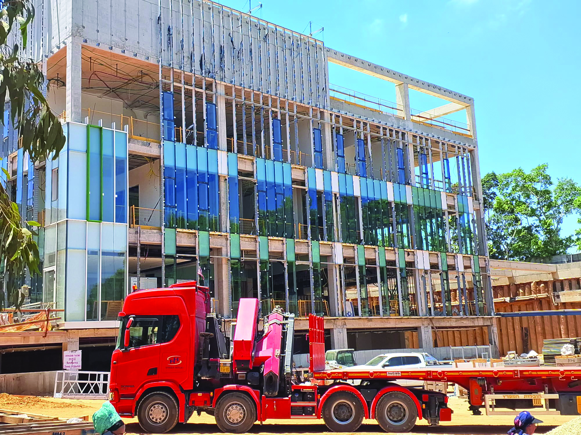 - Rooftops have been sealed; glass and curtain wall exterior installation is ongoing.
