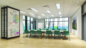 - Movable walls can turn multiple classrooms into one, a flexible design feature.