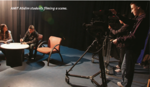 The film track which is now part of AMIT’s popular multi-school communications track takes place in a series of studios packed with state-of-the-art equipment. The hallways are lined with posters from popular Israeli films and on one special wall hangs the posters of films produced by students at AMIT Atidim.