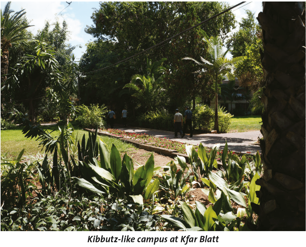 AMIT Kfar Blatt’s kibbutz-like campus, full of expansive lawns and low-set buildings, houses a middle school, a high school, and the junior college. Middle-school students receive a full school day and after-school activities but return home every evening.