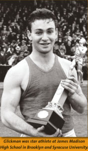 After a year of starring in football and track and field at Syracuse, Marty was an Olympian. Brushing off his disappointment at being pulled from the relay team, he returned to Syracuse for three more years of athletic stardom. He believed that the 1940 Olympic Games in Tokyo would be his year to win Olympic gold. But the onset of World War II forced the cancellation of the 1940 Olympics. Glickman enlisted and became an officer in the U.S. Marines.