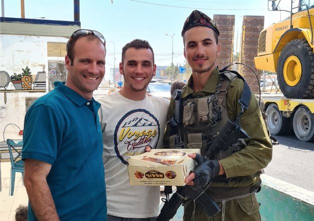 Everyone who studied in Yerucham knows Alluf, the well-known bakery that most students liked to spend time in. It is a favorite and familiar taste for all, so the visitors brought baked goods and a cooler full of cold drinks for the soldiers, who were very excited and so thankful.