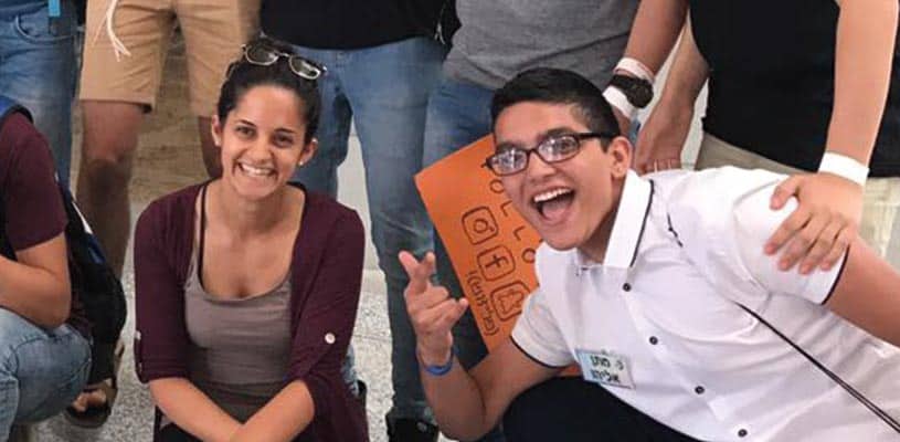 The competition is open to all 10th-grade students studying Arabic in Israel and comprises three stages (school, district and national). Not only did Matan make it to the finals—surprising himself, his teacher, Liat Gubber (pictured with Matan), and his classmates—but he came in second place out of the 15 contestants in the competition, illustrating one of AMIT’s core values: encouraging students to realize their full potential.